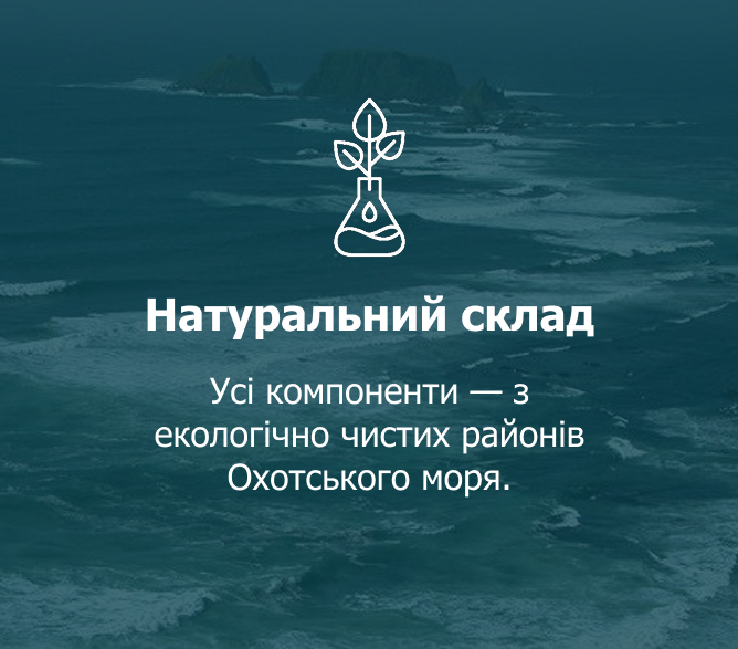 Наш продукт — це поєднання сили океану та наукового підходу: кожна формула пройшла експертну оцінку та підтвердила свою ефективність.