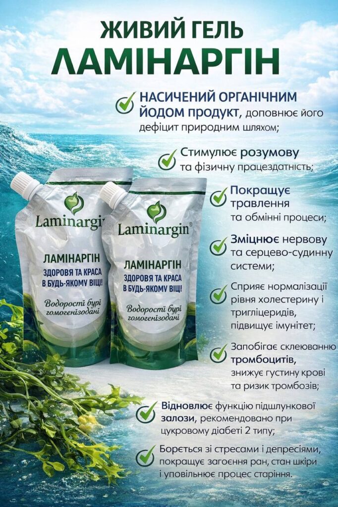 Ламінаргін повністю натуральний продукт, що має унікальний склад. Гель виготовляється з бурої морської водорості ламінарія, яка відома своїми цілющими властивостями та містить всі необхідні корисні речовини у природньому співвідношенні.